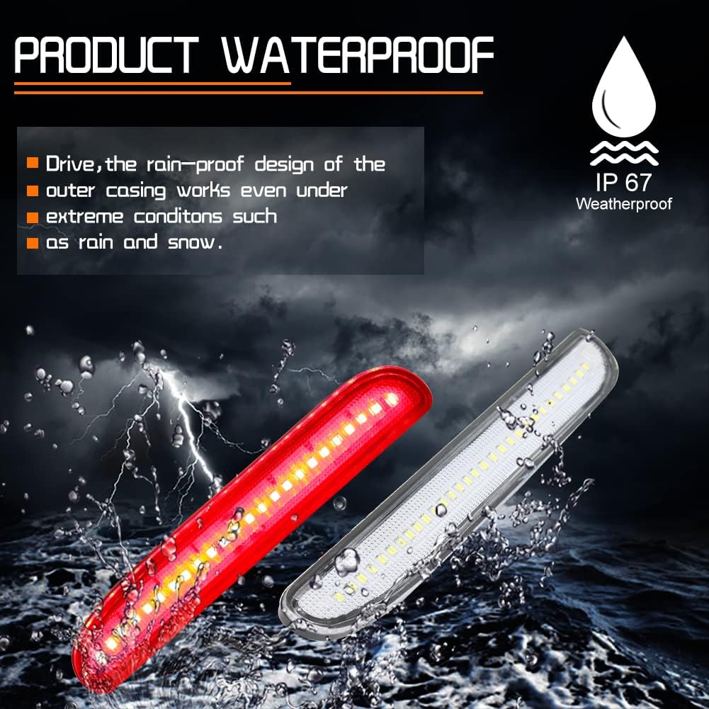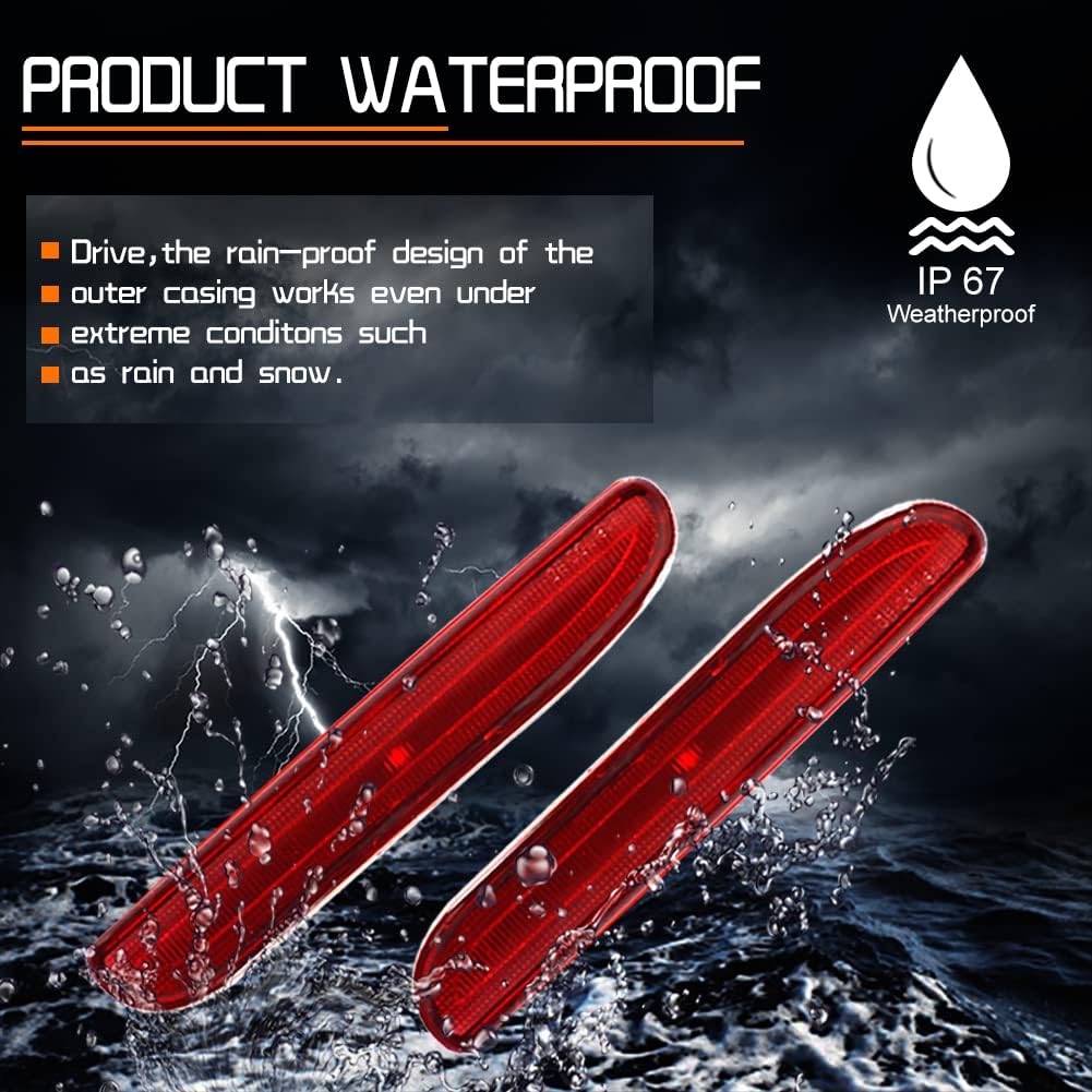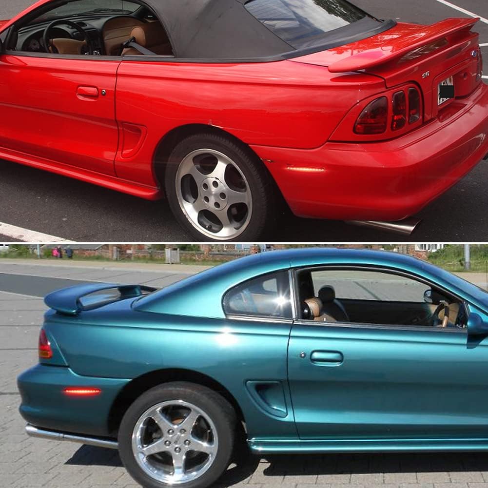 Fitment: Type of Lights: LED Rear side marker lights with smoked lens For 1994-1998 Ford Mustang. Compatible Vehicle: Note:Please make sure you have available space in your car for these lights to fit before placing order. Product parameters Lens Color: Smoked. LED Color: White. Voltage: 12-24V DC. Powered by White SMD LED chips. Replace OE Part# Left: F4ZZ-13A565-B, F4ZZ 13A565 B, F4ZZ13A565B. Replace OE Part# Right: F4ZZ-13A565-A, F4ZZ 13A565 A, F4ZZ13A565A. Lifespan: >50,000 hrs. Features: Material: Durable Smoked ABS Housing. DOT SAE approved. Error Free, No error message on dash. Simple Plug N' Play: Direct Replacement, No Modification Required. Low power consumption; Quick Instant Start-Up time. Direct fit to give your car a better and brighter true look. 2 x side marker lamp(Red led lights). Exact fit and direct replacement, super bright LEDs have a faster on/off response time for driving safety & perfect design enhances your car's exterior look. Powered with super bright White LED lights inside for side marker lamps. Give your Car upgraded rear LED lighting for increased safety and style at night! Note:If you have any questions , please do not hesitate to tell us by clicking "Ask seller question" from "Meet the Seller" section on the right top corner.Your mail will be guaranteed reply within 24 hours, Emails on weekend and holiday will be reply on the following business day.